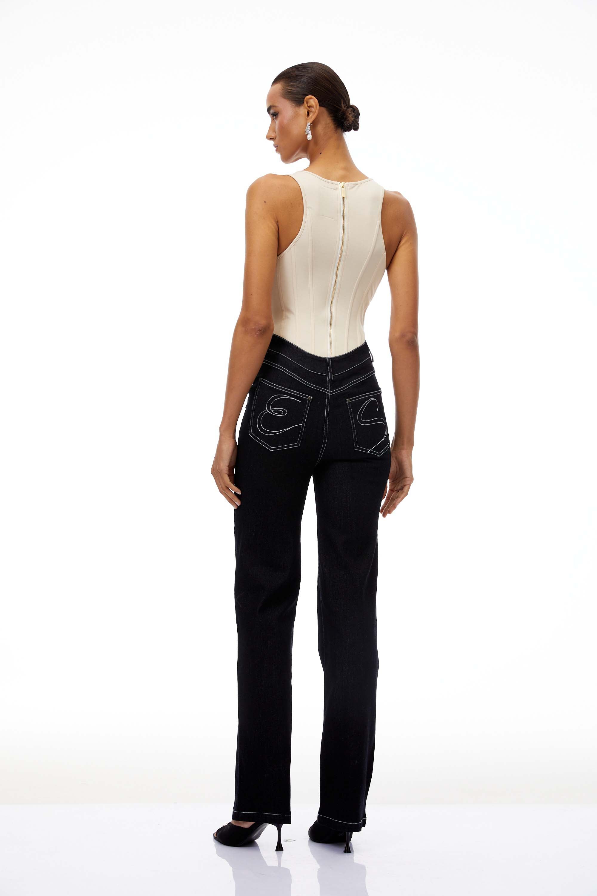 Marianne U-Neck Bodysuit & Straight Leg Jeans Set