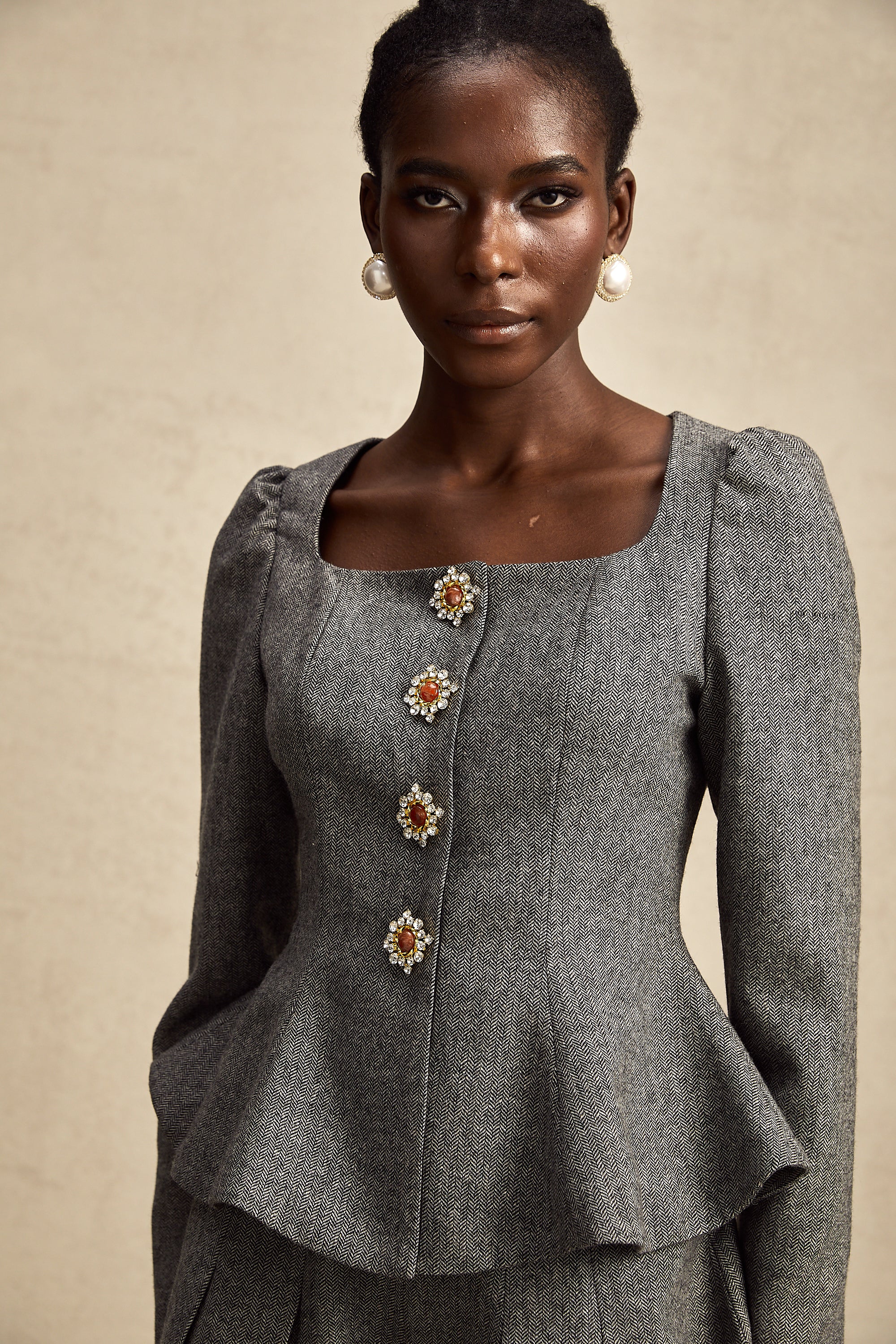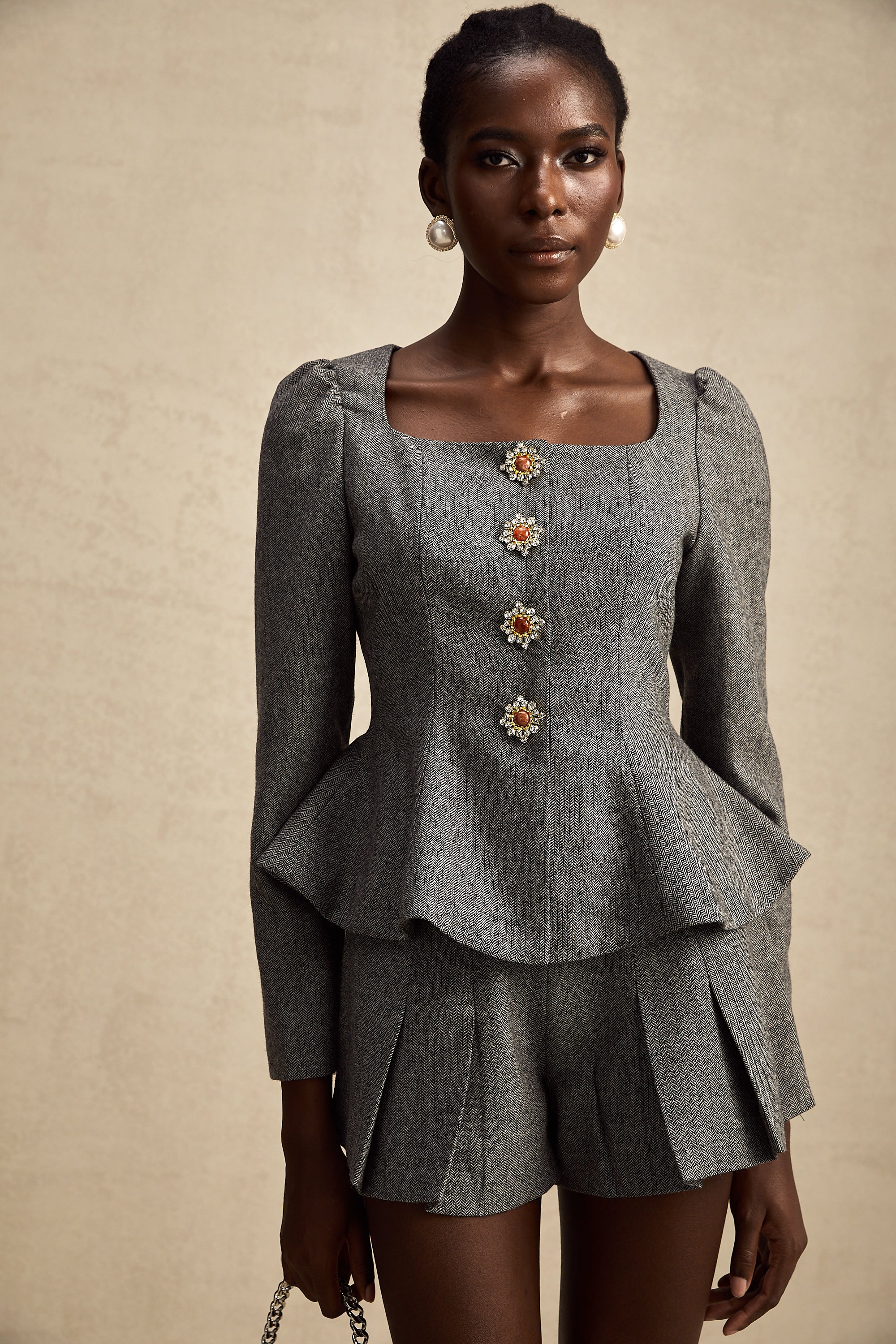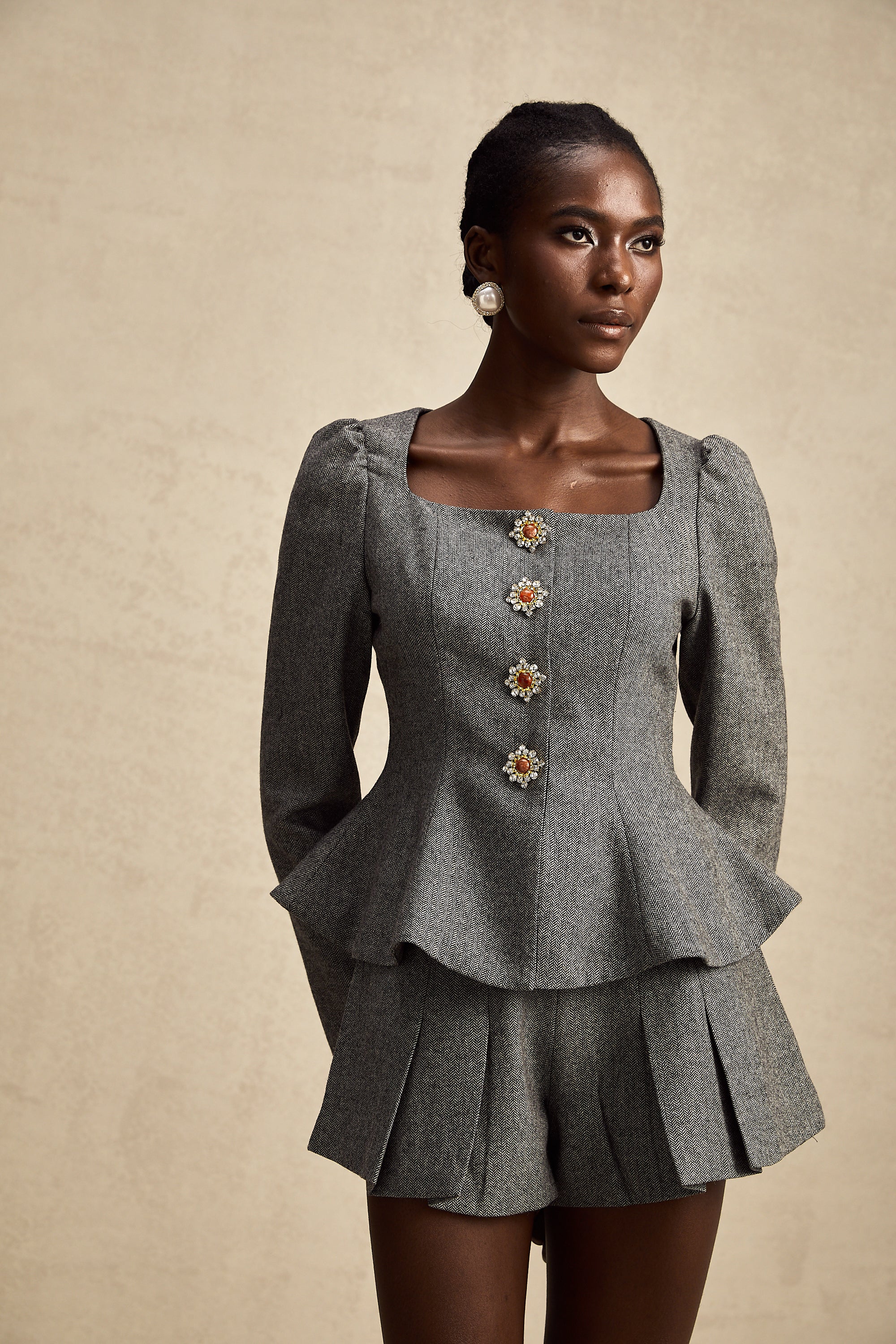 • Embellished buttons decorated