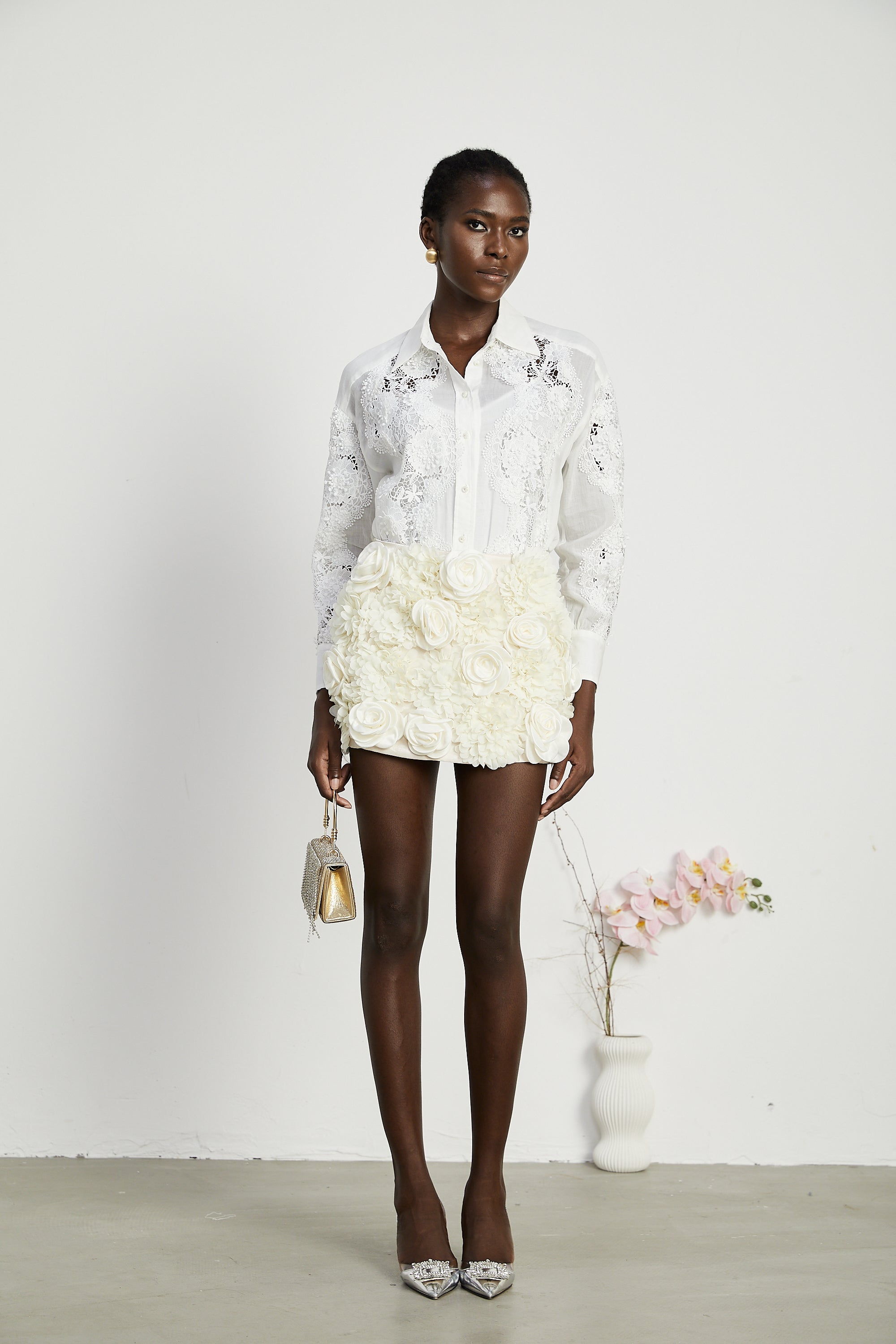 • Lace embroidered